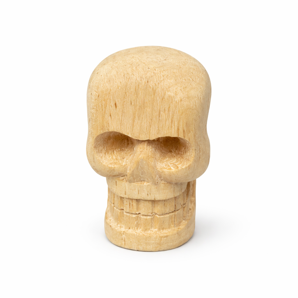 Craneo de madera de 4 a 5 cm x 3 cm aproximadamente, perforado para incrustar carga.